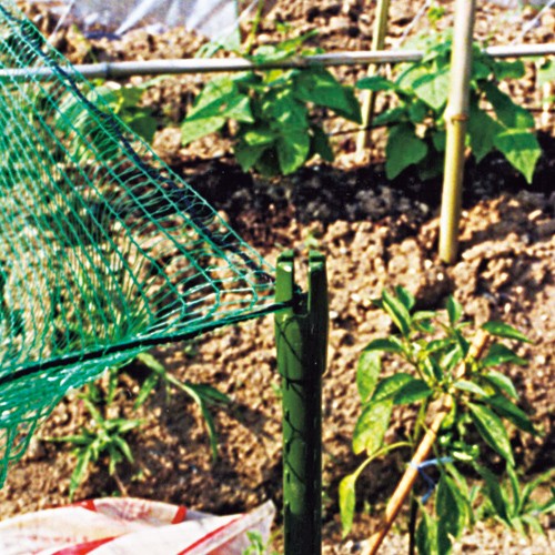 犬猫の侵入を防止し、大切な家庭菜園の作物を守ります。支柱はサビに強く、丈夫で長持ち。十字キャップ付き支柱と留め具で菜園の周囲に簡単にネットを展張できます。(日本製)