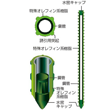 全面に独特の突起がついており、誘引性に優れています。表面は、特殊オレフィン系樹脂で覆われており、作物を傷つけません。両端の水密キャップ方式で、内側からのサビや腐食の心配がありません。(日本製)