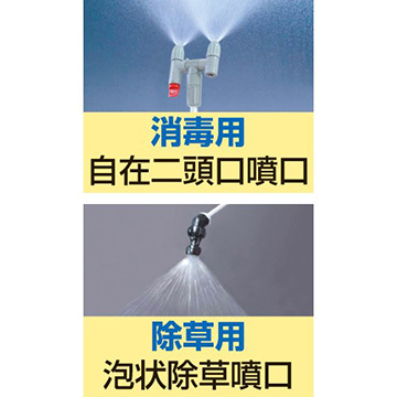 ・計量カップ/1個、ノズルパイプ/1本、泡状除草噴口/1個、自在二頭口噴口/1個、スポイト/1本