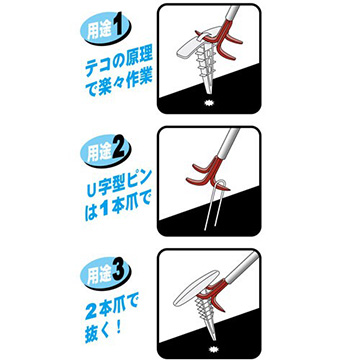立ったままの姿勢でアンカー抜きができ、作業がラクラクです。アンカーやUピンに対応できます。(日本製)