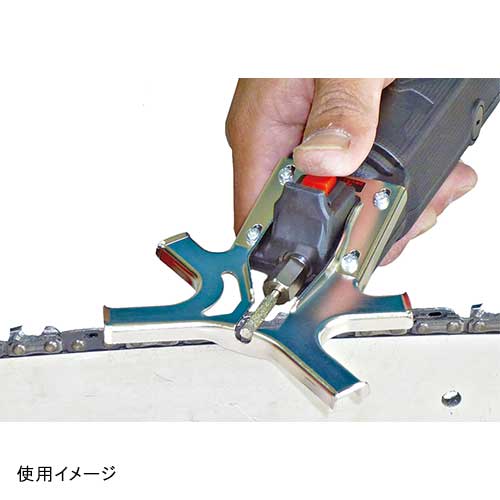 チェーンソーバーを目立てガイドに差し込み、横にスライドさせるだけ。簡単・正確に適した角度に目立てできます。砥石の回転数を落とさないように、刃を2~3回軽く押し当てれば1台当たり数分で刃研ぎができます。(日本製)