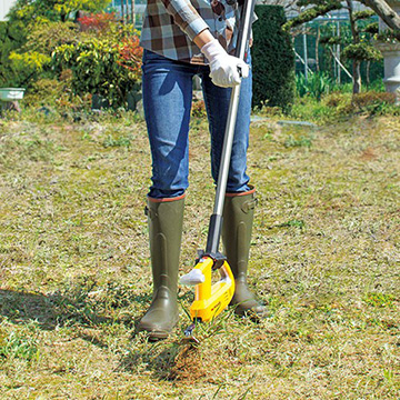 振動で根をほぐしながら抜くことでネコソギ抜ける力いらずの振動除草。根から抜き取ることで長期間きれいな状態を保てます。刃物や農薬を使わず除草ができます。充電式で、電源の無い場所でも使えます。(中国製)