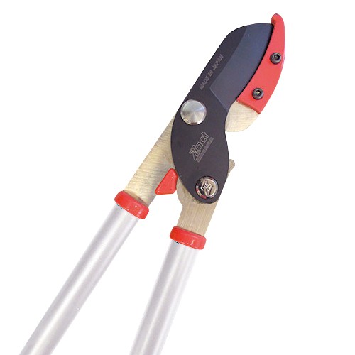 刃はアンビル式で、包丁で切るようなきれいな切り口に仕上がります。また、切刃にはヤニや樹液がつきにくいようフッ素コーティング加工されています。ギア倍力機構で、直径30mmの太枝も楽に切断できます。切断時の衝撃を吸収する樹脂製のクッション付き。長さがあるので剪定後、落ちたゴミを立ったまま細かく切断したりも楽にできます。(日本製)