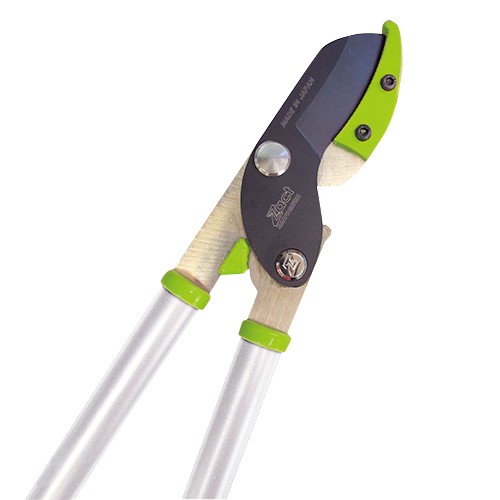 刃はアンビル式で、包丁で切るようなきれいな切り口に仕上がります。また、切刃にはヤニや樹液がつきにくいようフッ素コーティング加工されています。ギア倍力機構で、直径30mmの太枝も楽に切断できます。切断時の衝撃を吸収する樹脂製のクッション付き。長さがあるので剪定後、落ちたゴミを立ったまま細かく切断したりも楽にできます。(日本製)