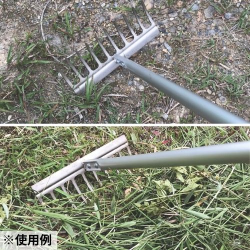 草削りとレーキをこれ1本で使い分けできます。頭部は刃物鋼を熱処理しているため、爪・刃ともに丈夫で曲がりません。またサビにくい無電解ニッケルメッキ処理されていますので、お手入れも簡単。柄の部分は軽量で耐久性に優れたアルミパイプ、エストラマー製のグリップも付いているので手が滑りません。(日本製)
