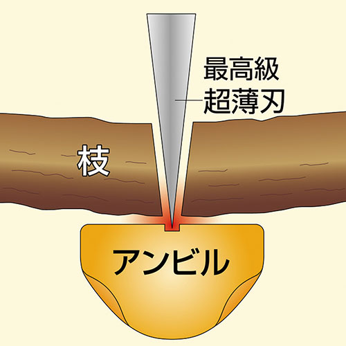 ※生木専用の鋏です。樫や柿など樹木の種類によっては切断径が異なる場合があります。