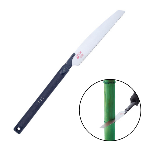 刃渡り27cmの長い刃と竹の繊維に負けない丈夫な目立てで伐採作業にぴったりです。刃先は切れ味と耐久性に優れたハードインパルス加工、切り粉の付着や目詰まりを防ぐSAWコートで軽快な切れ味が長続きします。