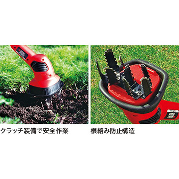 初めて耕す場所など、かたくなった土をほぐすのに好適。フル充電で約 30㎡耕すことが可能(土の状態により異なります)。コードレスで軽いので初心者の方でも簡単に作業ができます。(製造:中国、企画:アメリカ)