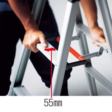 従来型の大きさや丈夫さをそのままに軽さを追求したプロ仕様脚立により持ち運びもラクラク。片手で簡単に開閉できるワンタッチバーの採用により作業効率アップです。(中国製)