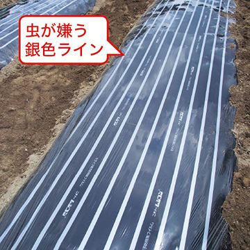 昆虫の色彩反応を応用したマルチで、ウイルス病を媒介するアブラムシの寄りつきを軽減します。雑草予防、施肥成分流出防止、土壌水分保持、泥のはね返りを防ぎます。(日本製)