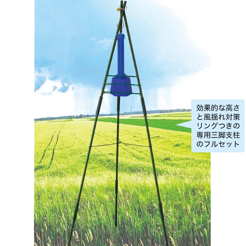 イノシシ・クマを「音」で寄せつけない防獣グッズです。発音体が発する「カチャカチャ」という人にとっては心地よい音(200~800Hz)が、動物は人がいるのかと驚き近寄らない効果を期待できます。支柱につるし3段階切り替えのスイッチを押すだけと操作も設置も簡単に使用できます。効果的な高さと風揺れ対策リングつきの専用三脚支柱のフルセットをご用意しました。(中国製)