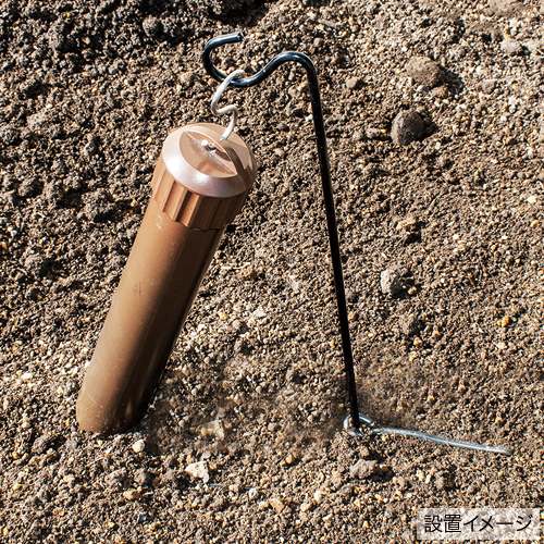 波状打撃振動によりモグラのアイマー器官(鼻先にある感覚受容器)を刺激・錯乱させます。それによりモグラはミミズなど、餌の捕獲が困難になり設置場所の半径15~20m※の範囲での活動を避け、ほかへ移動します。付属品の専用スタンドを使って簡単に適した角度と埋め込み深さで設置できます。(中国製)