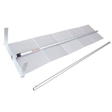 屋根に登らず雪降ろしが出来て安全。雪がどんどん滑り落ちてくるので、短時間で雪降ろしが出来ます。最小186cmから伸縮パイプを伸ばすことで347cmに。延長パイプを取り付ければ最大520cmになります。特許登録済み。(日本製)