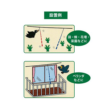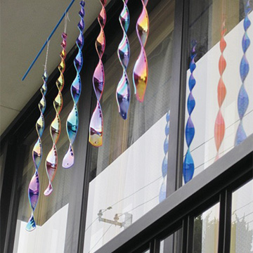 ベランダや田畑、お庭などに吊り下げるだけの簡単取り付けです。微風でもクルクルとトルネード風に回転し、眩しいレインボー照射が害鳥の視覚を錯乱し忌避効果をアップします。(中国製)