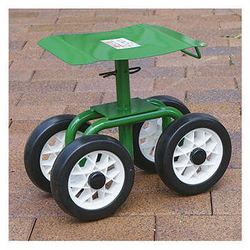 使いやすい高さに調整して使える作業用台車です。βピンで好きな位置に固定して使えますので、必要以上にかがんだり背伸びしたりする必要がありません。車輪は4つ、ノーパンクで幅の狭いタイプです。(日本製)