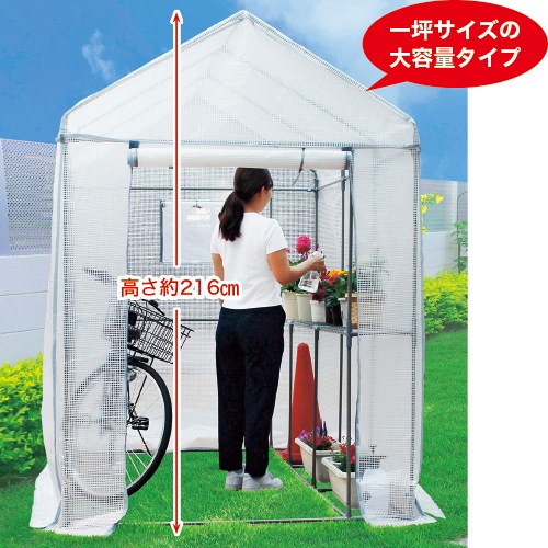 道具を一切使わずパイプを差し込むだけで組み立てできます。取り外しできる棚板があるので、背の高い花や鉢の収納にも便利です。温室の組み立てに慣れていない方でも簡単にでき、軽いので楽に移動できます。(中国製)
