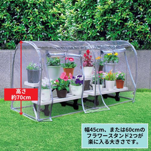 道具を一切使わずパイプを差し込むだけで組み立てできます。取り外しできる棚板があるので、背の高い花や鉢の収納にも便利です。温室の組み立てに慣れていない方でも簡単にでき、軽いので楽に移動できます。(中国製)