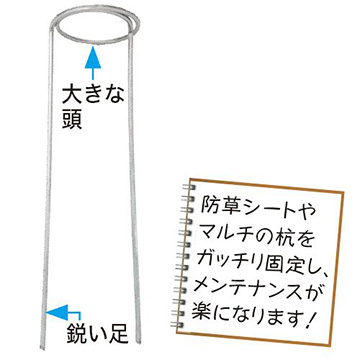 さびにくく丈夫で長もち!耐久性の高い防草シートにおすすめの防草シート用の杭です。防草シートを張った後の、剥がれやめくれ、継ぎ目の除草などのメンテナンスが軽減できます。(中国製)
