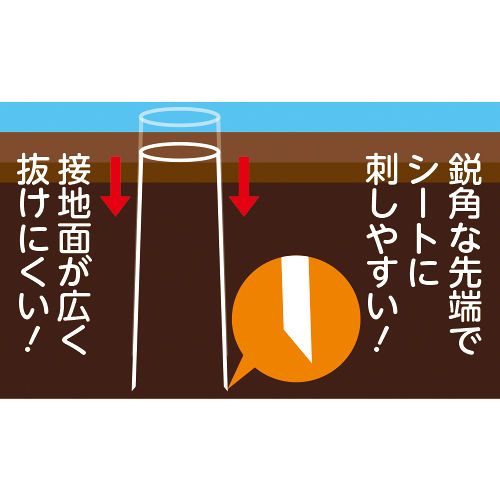 (2)足先が鋭く、厚い防草シートでもスッと楽に打ち込める。無駄な穴が開きません。