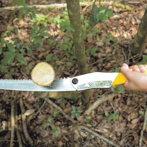カーブした刃が挽くだけで木に食い込むため、不安定な足場や肩より上での作業も驚くほど快適です。生木の剪定・伐採に適しています。