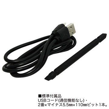 USBコード(通信機能なし)・2番×マイナス5.5mm×110mmビット1本。