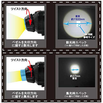 連続点灯:3.5(Power mode)~30時間(Low mode)