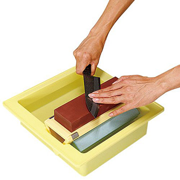 刃物の状態に合わせて、使う砥石を3種から選択できます。水を浸す作業を楽にできる専用の砥ぎ桶もセットになっています。砥石はクリップ式で簡単にセットでき、どなたさまも研師に!刃物をお手入れすることで切れ味がよみがえり長くご使用いただけます。(中国製)※砥石はベトナム製