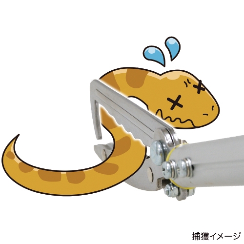 手元のレバーを握るだけの操作で、先端の特殊3点掴みハサミ部分がヘビをしっかりキャッチします。アルミ制で軽く、力に自信のない方でも簡単に扱えます。(台湾製)