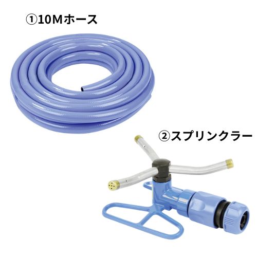 ②スプリンクラー:適合ホース内径12~15㎜×外径20㎜まで 放水距離約12m。放水角度360度。
