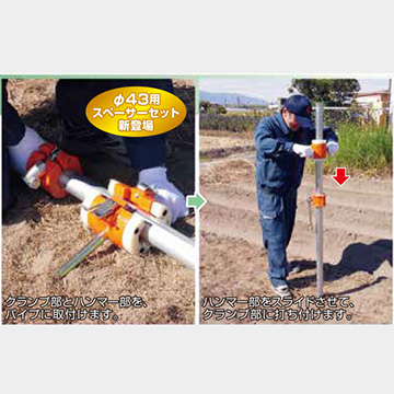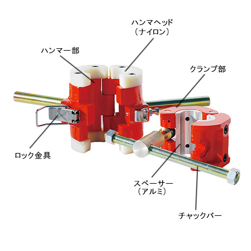 パイプの先端を叩いて打込むのではなく、パイプの途中にセットし、スライドさせて打込むため、先端の曲がった「アーチパイプ」や「長尺パイプ」にも使用可能です。(日本製)