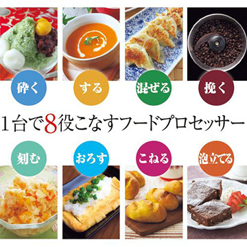 モーターメーカーがその技術を生かして作ったフードプロセッサー。パワーと繊細さを兼ね揃え「刻む」「こねる」など1台で8役をこなします。高機能なのに簡単操作、デザイン性のよさも魅力。(日本製)