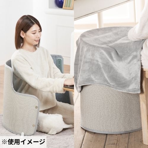 広い加熱面積のパネルヒーターが360°全方位から暖かく包み込み、冷えた足元を温めます。上から付属の毛布を掛ければ、ミニコタツのできあがり!厚い靴下を履いても寒かった足元がポカポカになります。前面は開けた状態でも閉じた状態でも使えます。使用場所やお好みに合わせてお使いください。本体は丸めることができるのでオフシーズンはコンパクトになり、場所を取りません。(中国製)