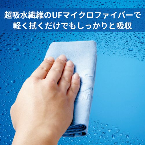 水で濡らせばひんやり冷たく、乾けば水分をしっかり吸収する1枚2役のドライタオル