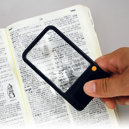 新聞やカタログの細かい字が読みにくい!そんな時に便利なルーペです。1枚のレンズに3種類の倍率(3,5,7倍)を備えているので様々な大きさの文字に対応できます。またLEDライト内蔵で、暗いところでも手元を明るく照らします。厚さ0.85cmとコンパクトで持ち運びに便利な収納ケース付きです。(台湾製)