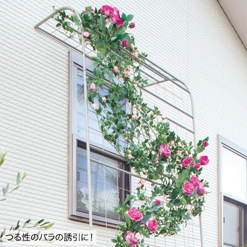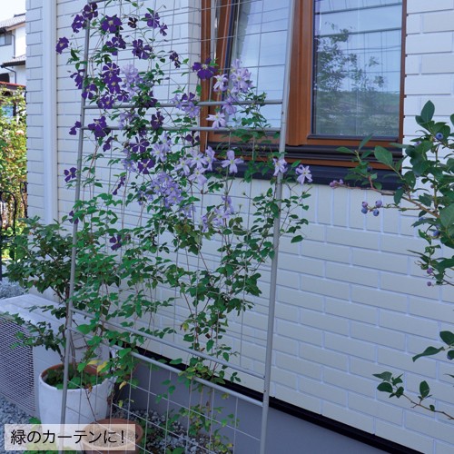 つる性植物をしっかりとはわせられるスチール製の格子型トレリスで、塗膜で傷がつきにくく、熱を持ちにくい加工がされています。シンプルなデザインなので、お好みの使い方ができ、緑のカーテンやつる性のバラなどで壁面を飾るのにおすすめです。(中国製)