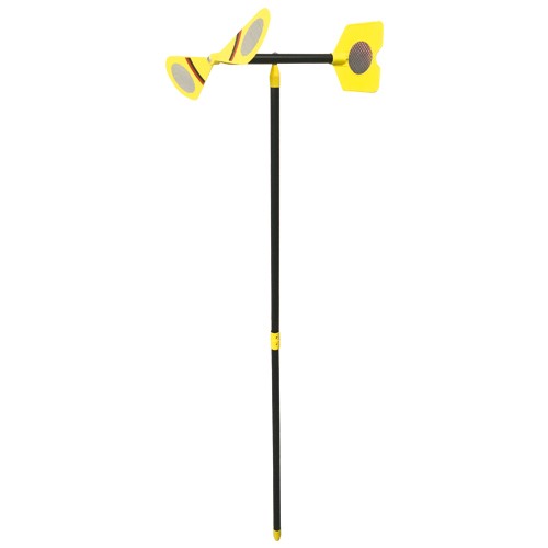 プロペラと尾翼のキラキラで鳥を脅かし遠ざけて、プロペラの回る振動が地中に伝わりモグラを追い払います。電源不要でどこでも設置が可能で便利です。(ベトナム製)