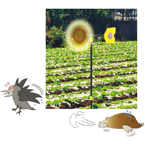 プロペラの回転&振動で鳥とモグラを寄せ付けない