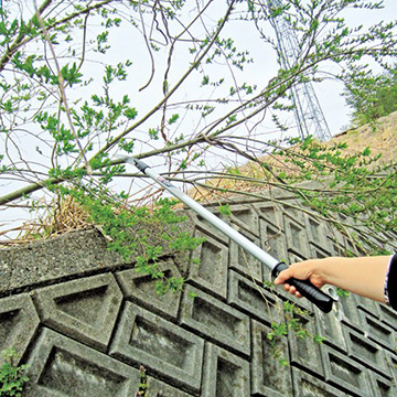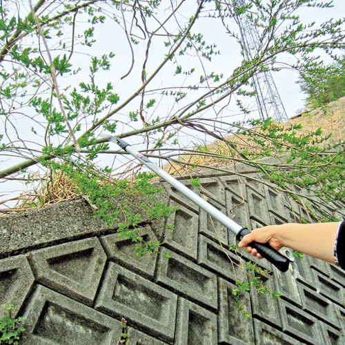 手が届かない少し高い所の枝打ちに便利です。ハサミでは切れない太い枝の切断も可能です。柄はアルミ製で約430gと軽量のため、使いやすさが特長です。(日本製)