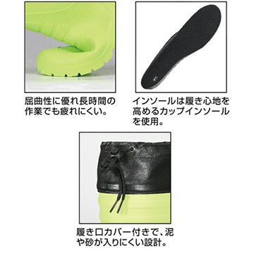 軽さとやわらかさとフィット性が高い進化した新素材発泡ゴム長靴。(中国製)