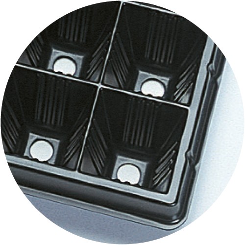 根巻きが少ないので早期活着ができ、植え傷みが軽減されます。黒色トレイは低温期に好適です。(日本製)