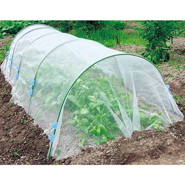0.25mmの目合いでコナジラミなどの微細害虫を防ぎます。極細強力糸使用で通気性があり、ネットの上からの散水も可能です。光もしっかり通し、やわらかな素材を使用しているので作物を傷めることがなく、ベタがけにも使えます。(日本製)