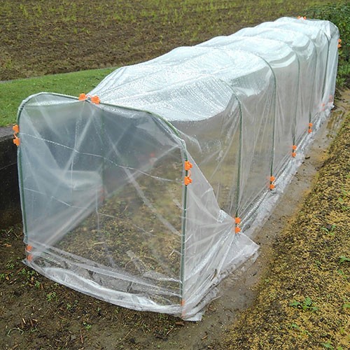 強い雨風、低温などの天候不順による悪環境から作物を守ります。畝長5mに対応したゆったりサイズです。(日本製)