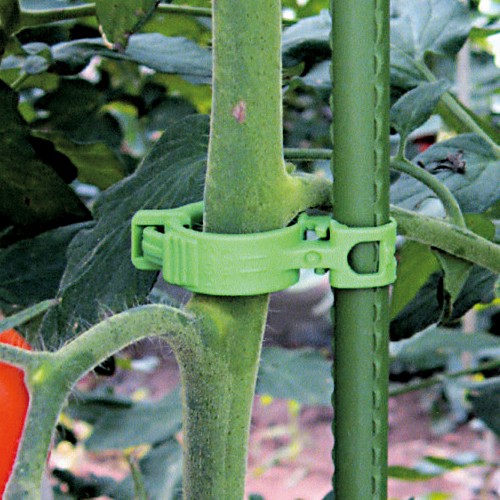 茎には優しく、支柱には強く挟み、付け外しもワンタッチ。茎の生長に合わせて留め替え移動が簡単な誘引具です。(日本製)