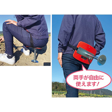 収穫、作業補助に好適です。スプリングが内蔵されているので、バネの力で立ち上がりをしっかりサポートできます。ベルト付きでお尻にしっかりフィットします。マルチの上でも使える皿付きで便利です。(日本製)