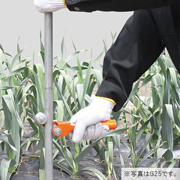 パイプに引っ掛けるだけで、パイプハウスや支柱の「差込み&引抜き」が、とっても楽になる補助具。