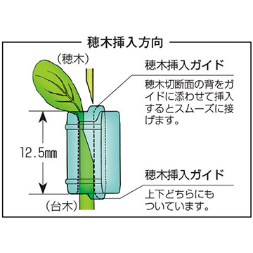 キュウリなどウリ科の片葉合わせ接ぎに使いやすく、接合部がきれいに仕上がります。透明なので切断面の合わせや接合状態を容易に確認ができ、摘み部は指先で摘み開く時に使いやすく、持ちやすい形状になっています。(日本製)