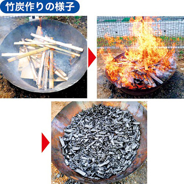 片付けたい枯枝、剪定枝、枯竹などで炭づくり。(M100使用)。野焼き規制・煙公害対策(無煙炭化器による炭づくりは野焼きではありません)。行政・大学・NPO法人で採用実績があります。製品寿命10年以上。(日本製)