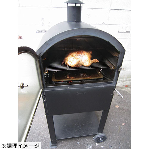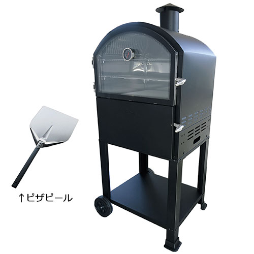 木炭か薪を燃料とする、グリル調理ができる大型のオーブンです。ピザピールも付属しており、本格的なスタイルでお好みの焼き加減のピザを楽しめます。キャスターがついているので移動もさせやすいです。(中国製)