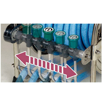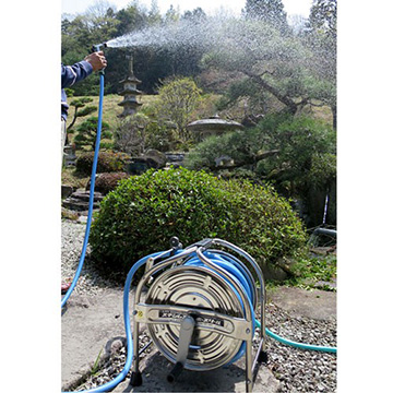 ホースの巻取り時にホースに手を添えることなく整列巻が可能な「ナラシマキガイド」を搭載したステンレス製のホースリールです。ホースは耐圧防藻タイプで頑丈・長持ちです。(日本製)