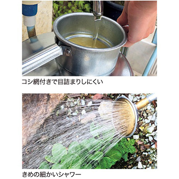 機能美のレトロでスタイリッシュなジョーロです。プラ製ではまねできない、きめ細かい筒先から出るやわらかなシャワーは土にもスーッと染み込み、タネまきや発芽時にも◎。持ち運びやすい、絶妙な持ち手。(日本製)